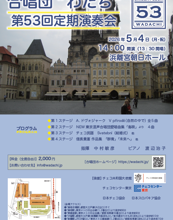 ・演奏予定曲:チェコ民謡とドヴォジャーク作曲の合唱曲合計3曲